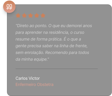 Não. O curso é 100% prático e direto ao ponto, dividido em 8 módulos. Ele foi feito para o profissional que vive na correria do plantão e pode ser assistido no seu ritmo, pelo celular, nos seus intervalos.